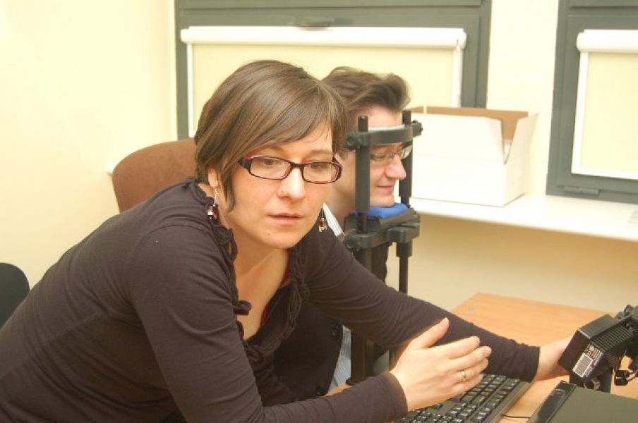Eye-tracking to jedna z ciekawszych metod badawczych, która polega na śledzeniu ruchów gałki ocznej podczas wykonywania przez badanego różnych czynności. Analiza tych ruchów pozwala zbadać, co przyciąga naszą uwagę i na jak długo, a nawet, pośrednio, co dzieje się w umyśle osoby badanej. Eye-tracking wykorzystywany jest w bardzo wielu dziedzinach, np. w analizie efektywności reklam, w testowaniu interfejsów urządzeń, ale także w badaniach językowych takich jak analiza procesu czytania, rozumienia mowy czy tłumaczenia. Eye-trackery umożliwiają prowadzenie badań językowych na najwyższym, światowym poziomie. Projekt usyskał wsparcie grantowe z Narodowego Centrum Nauki (nr UMO-2012/07/B/HS6/00487 oraz nr UMO – 2012/07/E/HS2/00661)