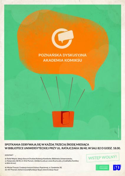 Biblioteka Uniwersytecka w Poznaniu oraz Fundacja Instytut Kultury Popularnej serdecznie zapraszają na pierwsze w tym semestrze i roku akademickim spotkanie w ramach Poznańskiej Dyskusyjnej Akademii Komiksu.