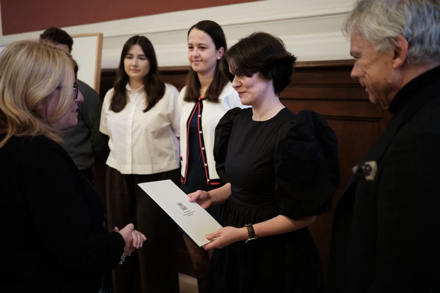 Gratulacje stypendystom złożyli: JMR UAM prof. Bogumiła Kaniewska, Prorektorka UAM ds. studenckich i kształcenia prof. Joanna Wójcik, dr Aleksander Broda z Kulczyk Foundation oraz prof. Dominika Narożna, członkini zarządu Fundacji UAM.