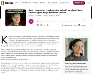 Prof. Kinga Kamieniarz-Gdula z Centrum Zaawansowanych Technologii i Wydziału Biologii UAM była gościnią programu Radia Naukowego. Rozmowa dotyczyła genów i nowotworów.