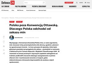 "Występując z Konwencji ottawskiej Polska chce, w razie zagrożenia, móc stosować miny przeciwpiechotne dla obrony, zgodnie z planem i na ograniczonym terenie - to inna sytuacja niż zjawisko, które było głównym powodem przystąpienia do zakazu – powiedział w rozmowie z Defence24.pl dr Tomasz Raburski z Wydziału Filozoficznego UAM".