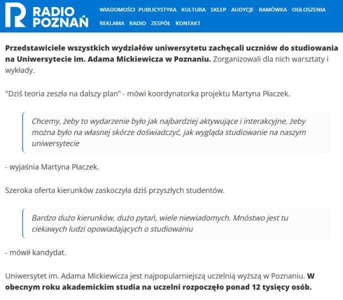 14 listopada odbył się Dzień Kandydata na UAM. Zachęcamy do zapoznania się z relacją z wydarzenia, przygotowaną przez Radio Poznań.