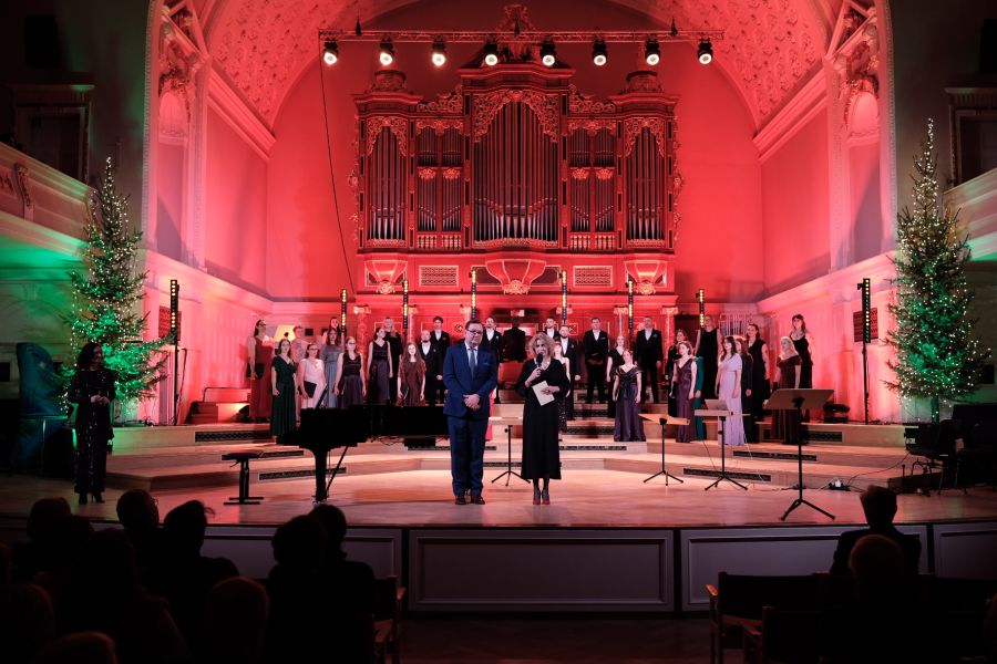 Koncert składał się z dwóch części. Jako pierwszy wystąpił Chór Kameralny UAM pod dyrekcją Krzysztofa Szydzisza i Joanny Piech-Sławeckiej, z towarzyszeniem solistów: Anny Alexandrowicz (sopran solo), Macieja Afanasjewa (skrzypce elektryczne), Domina Haliniaka (trąbka), Wojciecha Łuczniewskiego (saksofon), Huberta Trojanka (organy) i Pawła Głowińskiego (fortepian), który był również autorem aranżacji.