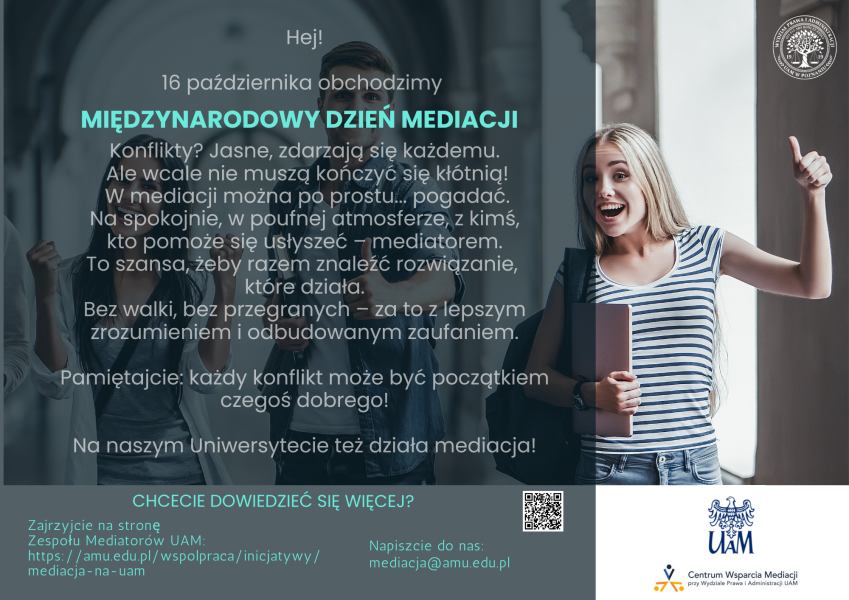 16 października świętowaliśmy Międzynarodowy Dzień Mediacji. Z tej okazji Zespół Mediatorów UAM przygotował szereg atrakcji dla społeczności uniwersyteckiej.